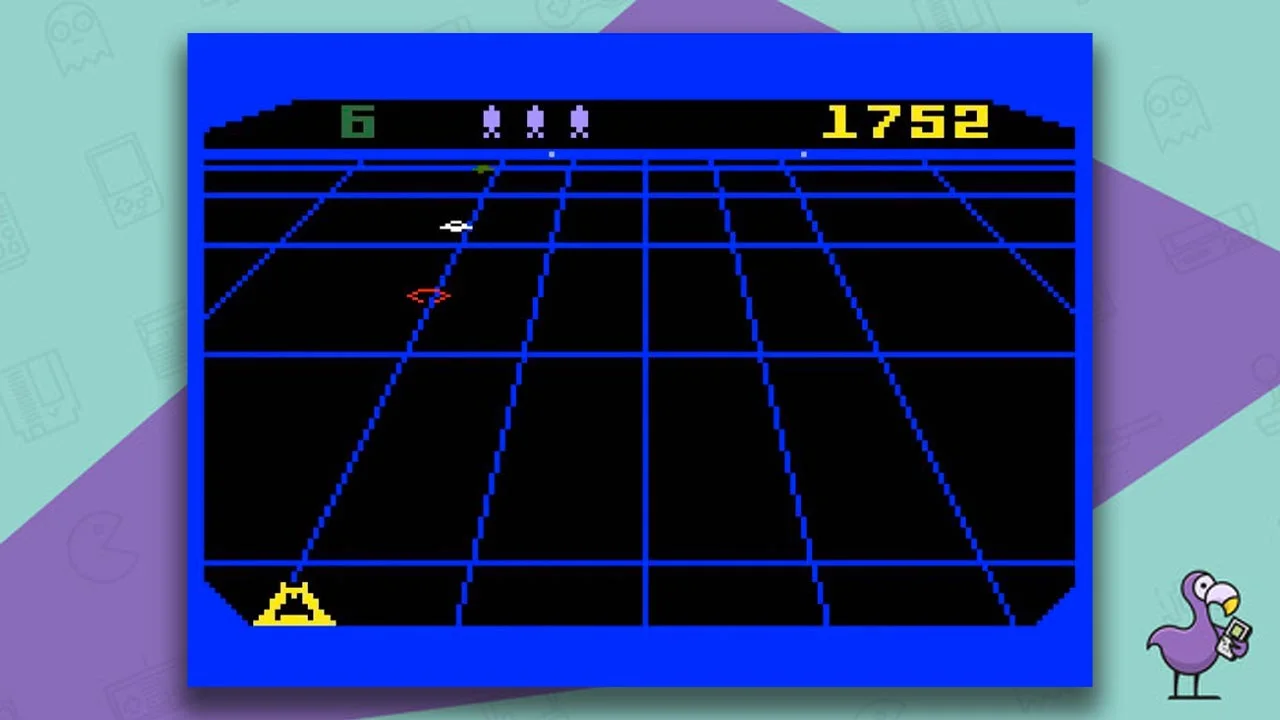 Si bien el juego del cañón láser tiene una sensación definitiva de Space Invaders al respecto, hay otras características, como la posibilidad de ingresar al Hiperespacio, que le dan a este juego una ventaja sobre Demon Attack.