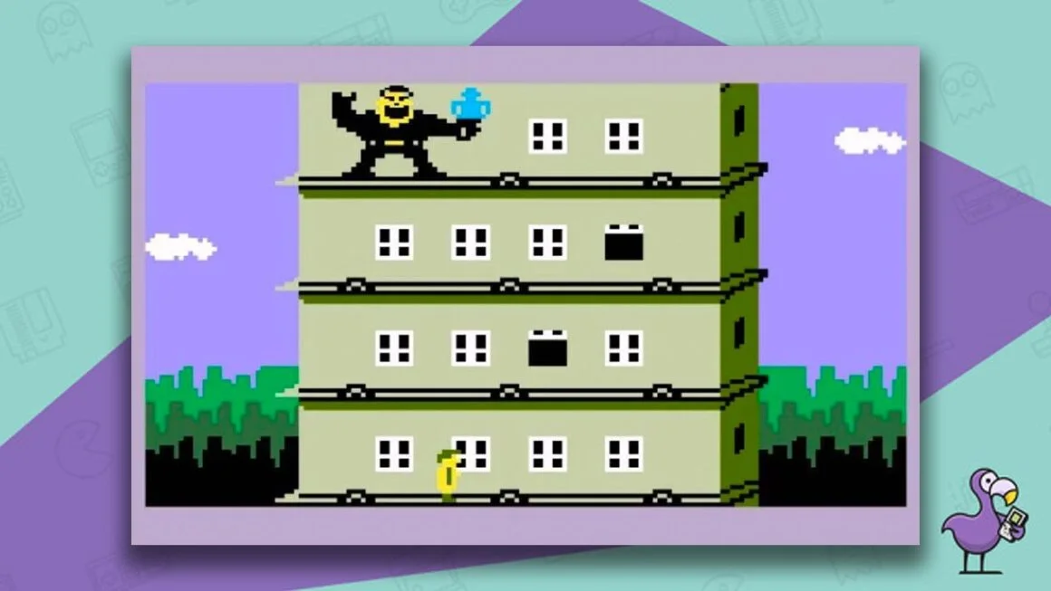 Ingrese a Beauty & The Beast, la respuesta de Imagics al popular juego de arcade de Nintendo. En lugar de Donkey Kong, el antagonista del juego es un tipo llamado Horrible Hank. Parece un mono con cabeza de hombre, lo cual no es raro en absoluto…